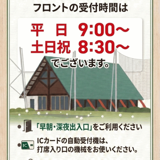 有田ゴルフガーデンでは、早朝・深夜にご利用いただくお客様向けに、入場料金が無料になるお得なサービスを実施しております。