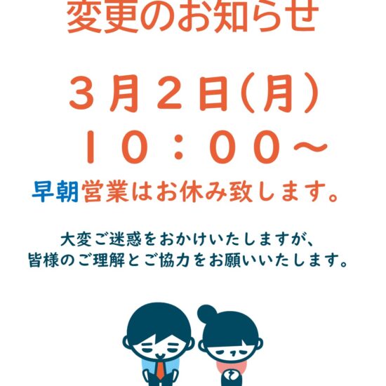 早朝営業はお休みさせていただきます。